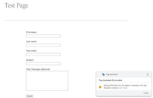 Now we want to test a form submission. Navigate to the page your form is located on, and complete a test submission.