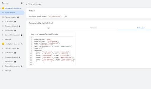 Now click on the formSubmission event under Summary, and click on Data Layer.