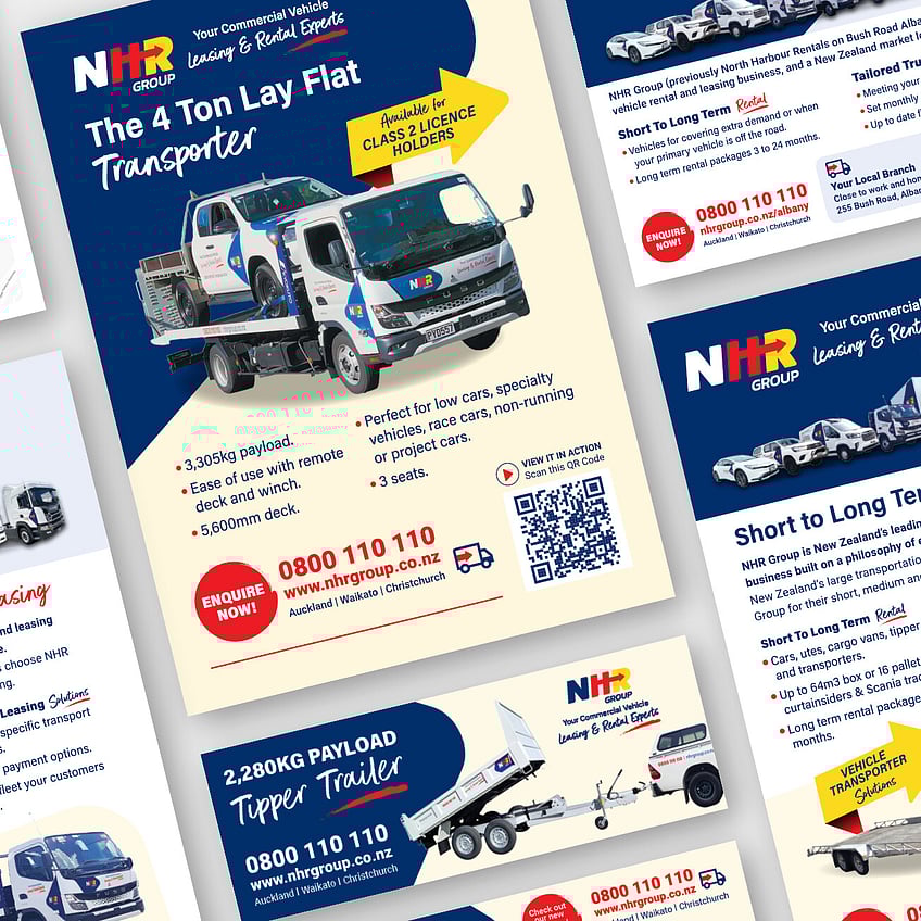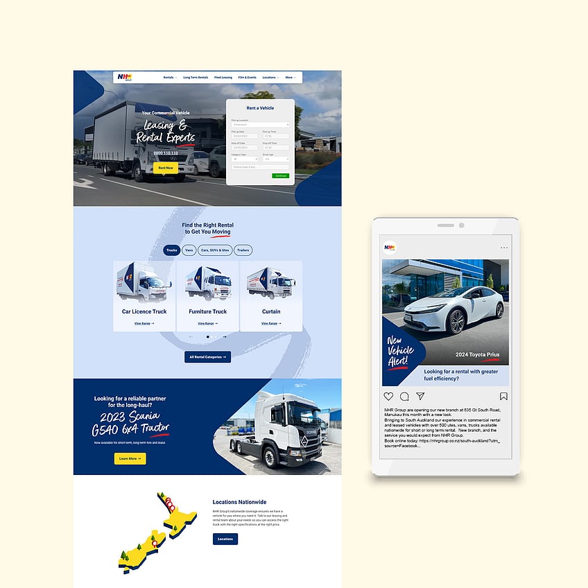 NHR Group is a leading provider of commercial vehicle solutions across New Zealand. As North Harbour Rentals rebranded and expanded nationally, they partnered with us to unify their brand, launch new branches, and optimise digital channels to drive growth.
